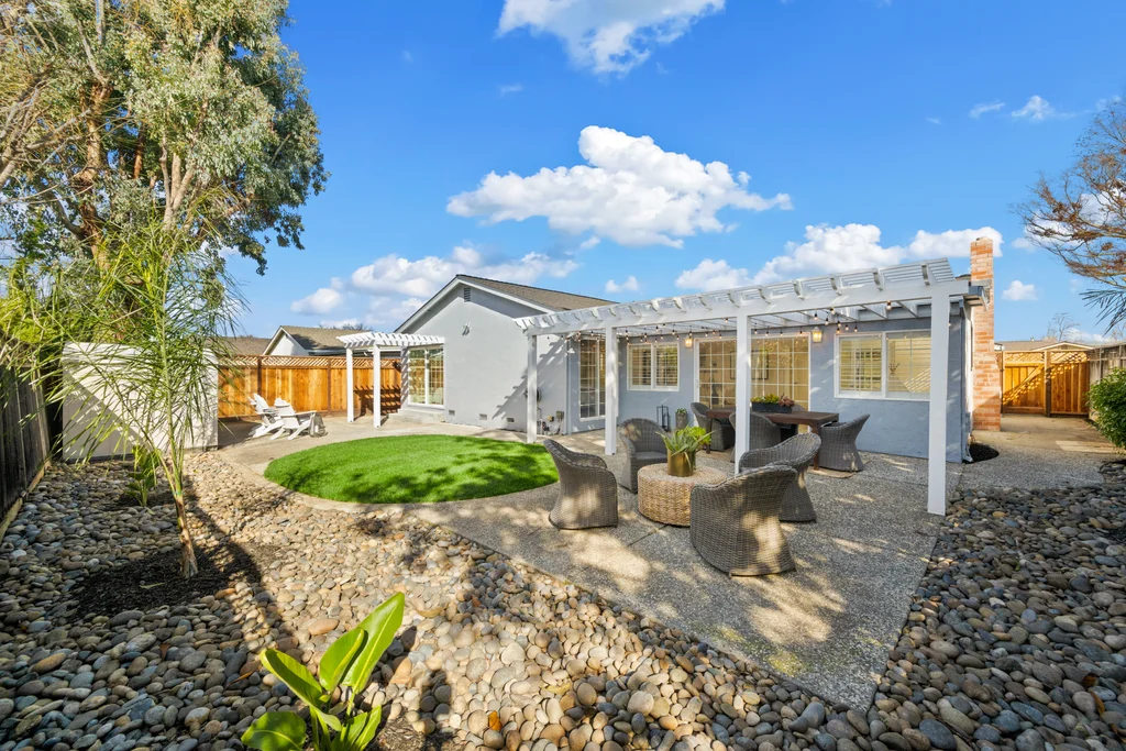 A welcoming front patio sets the tone for the home and offers a great space to relax or gather with guests, while the expansive backyard provides ample room for outdoor entertaining, play, or future customization.